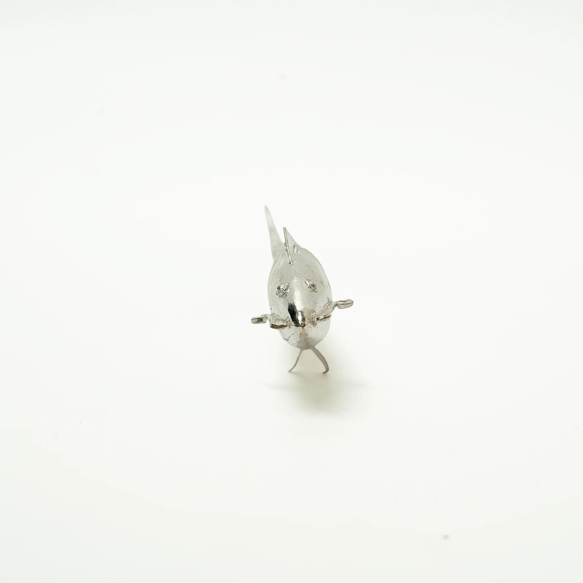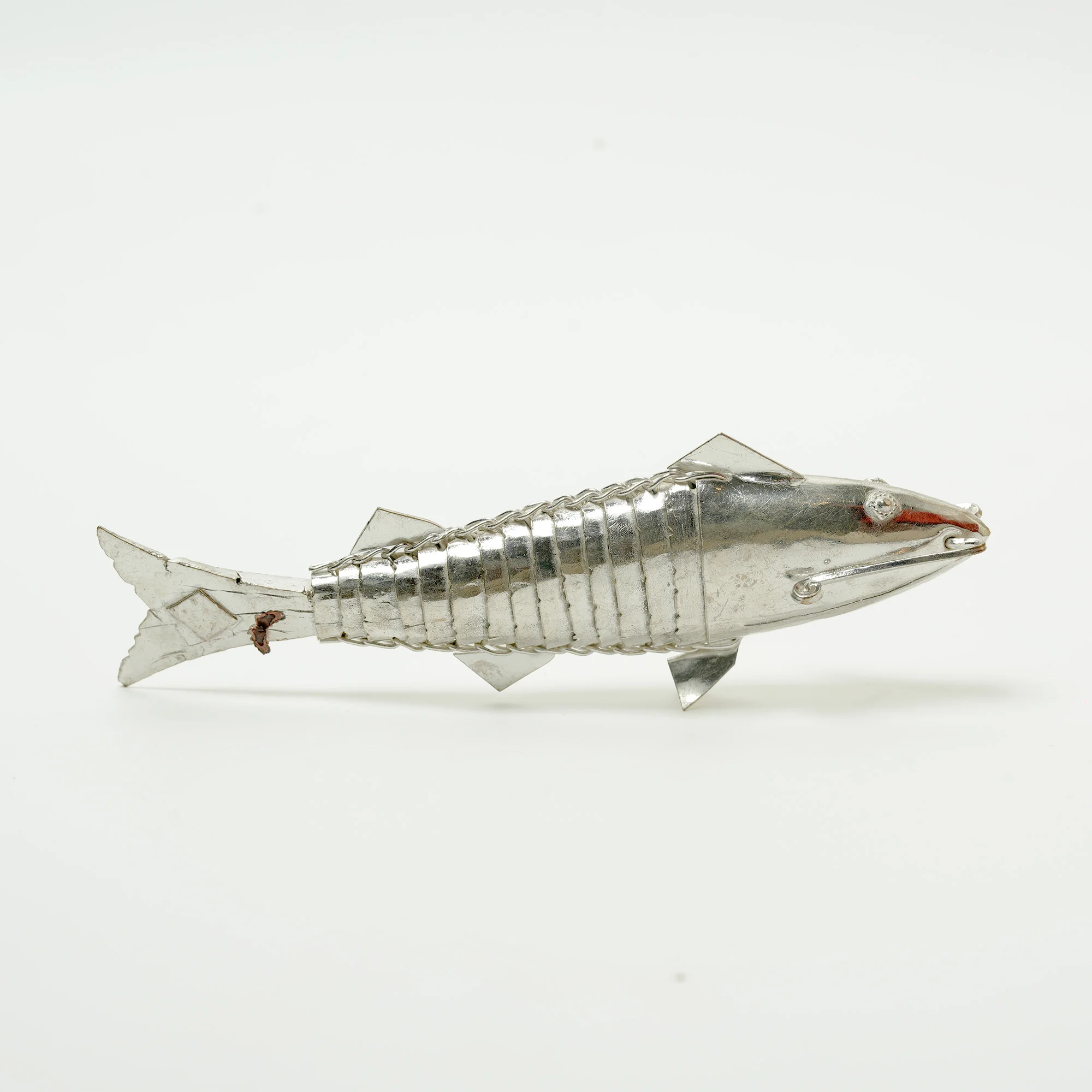 Description: Discover the marvel of traditional craftsmanship with our Handcrafted Vastu Fish, made from high-quality 92.5 Sterling Silver. This exquisite artifact is defined by its distinct body structure, featuring a series of precise, segmented lines that create a sleek and detailed silhouette.